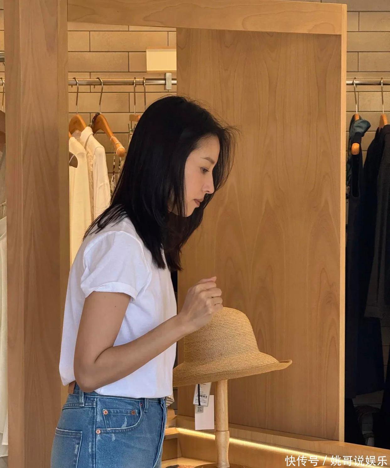 当日她身着白色T恤配牛仔裤,玄色长发松开披肩,淡妆点缀,超世绝伦,气质极为隆起!
